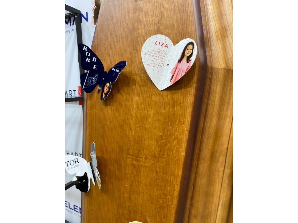 Na urny, hroby, dveře a nejen to – kovové štítky ve tvaru srdce personalizujete přesně tak, jak zákazníci potřebují. Ať už hledají foto na hrob, štítek na urnu či dekoraci na dveře. Potisknete je libovolným textem, motivem i fotografií. Jednoduše a za pár vteřin, ať už provozujete copycentrum či pohřební služby.