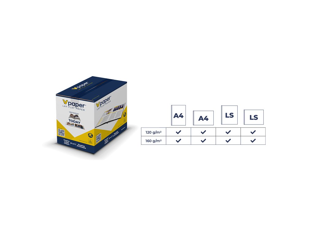 V-Paper potisknete jednoduše jako kancelářský papír. Vybírejte z řady formátů a gramáží. V tomto balení najdete 250 listů A5 na výšku s vyšší gramáží 120 g/m² (gramáž obyčejného kancelářského papíru je 80 g/m²).